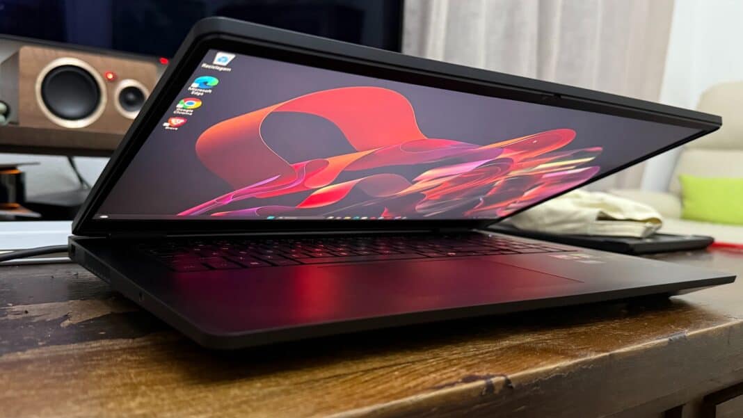 Em suma, um portátil aparentemente moderno, com um processador novo, mas artificialmente limitado logo à partida. Além de tudo isto, o armazenamento fica pelos 512 GB SSD, que é aceitável, e o ecrã é um painel 1920×1200 a 60 Hz. Nada de especial, mas suficiente para o segmento.