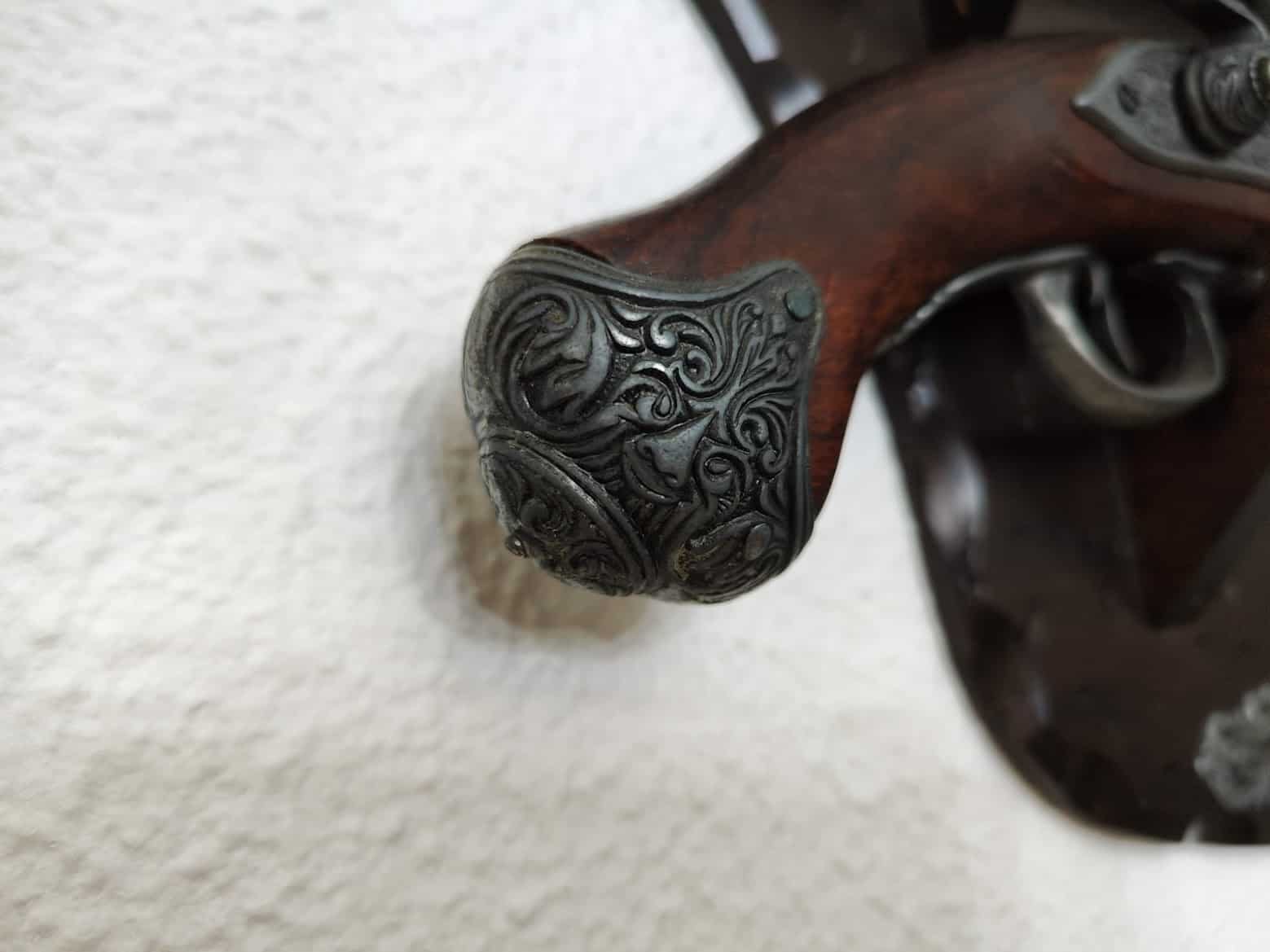 No caso da ‘pistola’ antiga, na minha opinião, é o Oppo que se safa melhor, ao conseguir reter muito dos acabamentos do punho, ao mesmo tempo que consegue focar bem o suporte bem como a parede. Em segundo lugar fica o S22 Ultra, que consegue representar as cores reais do objeto. Em terceiro, temos o Xiaomi 12 Pro a conseguir muitos dos detalhes do punho, mas a ter problemas no foco.