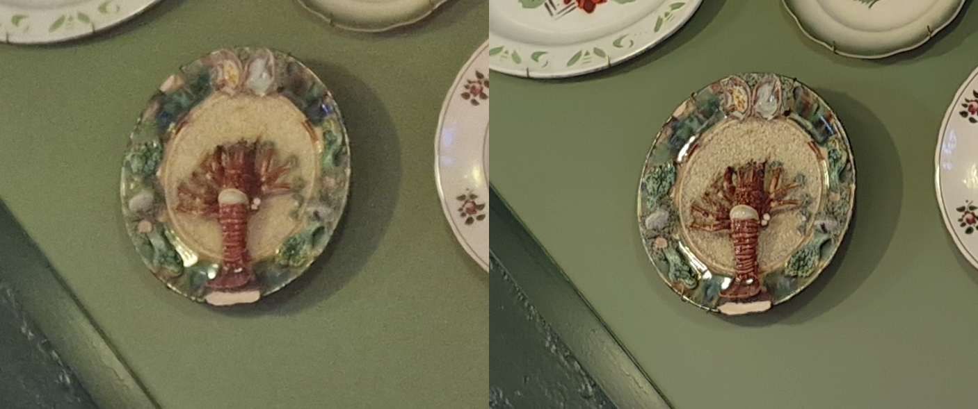 Mas as coisas não ficam por aqui, o X80 Pro também é capaz de capturar mais detalhe e informação! Como podemos ver num dos pratos mais detalhados da parede do restaurante Ó Balcão em Santarém.