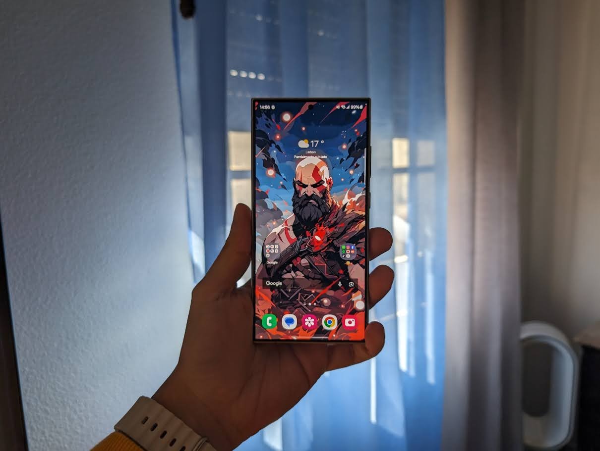 Assim, podemos dizer que o iPhone é mais confortável na mão, especialmente porque também é um pouco mais pequeno, e as curvaturas nos cantos permitem uma pega mais “amigável”. Porém, o S24 Ultra oferece um ecrã superior para a visualização de conteúdo e produtividade.