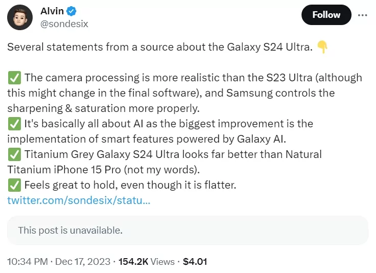 Outros rumores dizem que a série Galaxy S24 custará o mesmo que o Galaxy S23. Isso seria um pouco surpreendente, assumindo que o Galaxy S24+ virá com mais RAM por defeito.