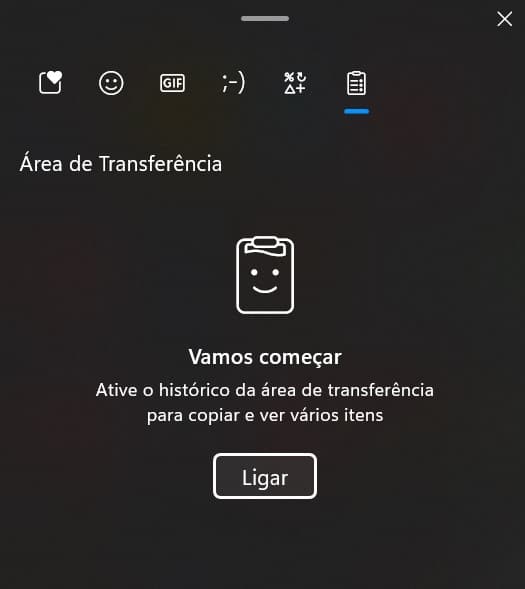 Pois bem, caso não saiba, se aceder ao atalho Tecla Windows + V, vai abrir um painel muito curioso, de seu nome “Área de Transferências”