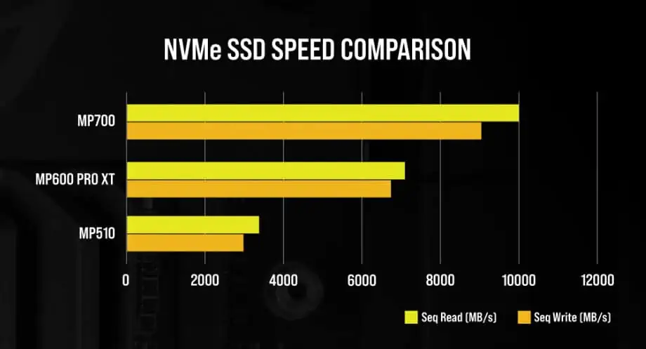 Para ter a noção da diferença, o atual SSD topo de gama da Corsair, o MP600 Pro XT fica pelos 6.5GB/s tanto na leitura, como na escrita sequencial.