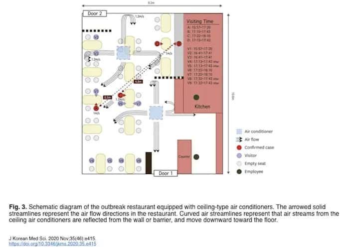 Os investigadores concluíram que esta infeção teve mesmo lugar no restaurante e devido ao transporte de partículas pelo ar.