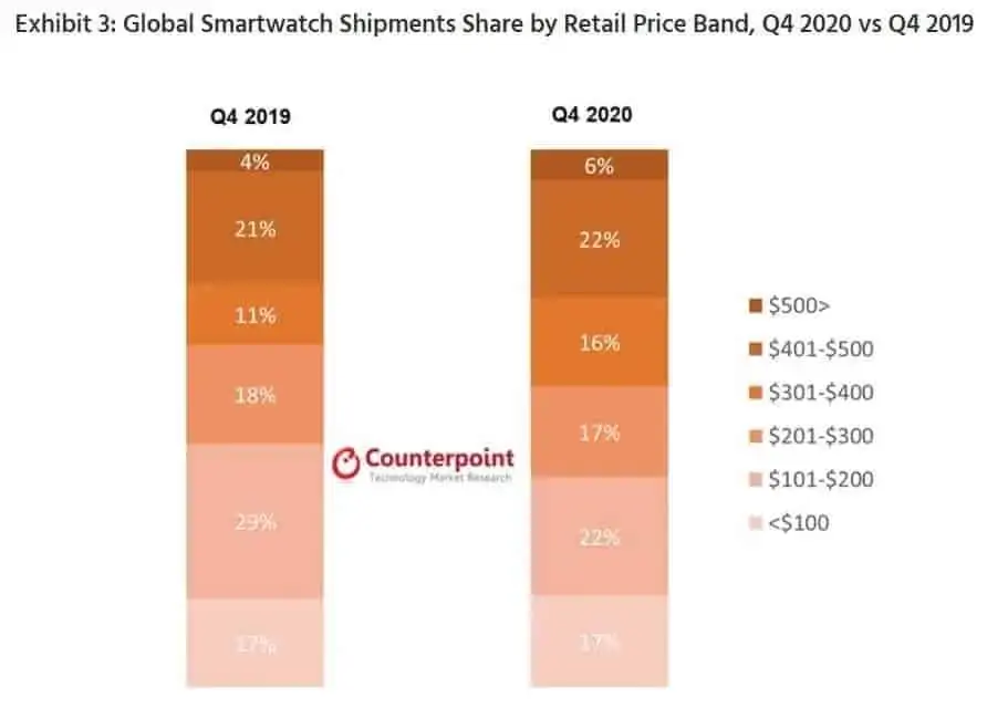Assim, no quarto trimestre de 2020, o mercado de smartwatches diminuiu ligeiramente numa base anual. Assim, os analistas atribuem isto a uma nova onda da pandemia, que afetou negativamente as vendas. Em geral, o mercado cresceu apenas 1,5% ao longo do ano.