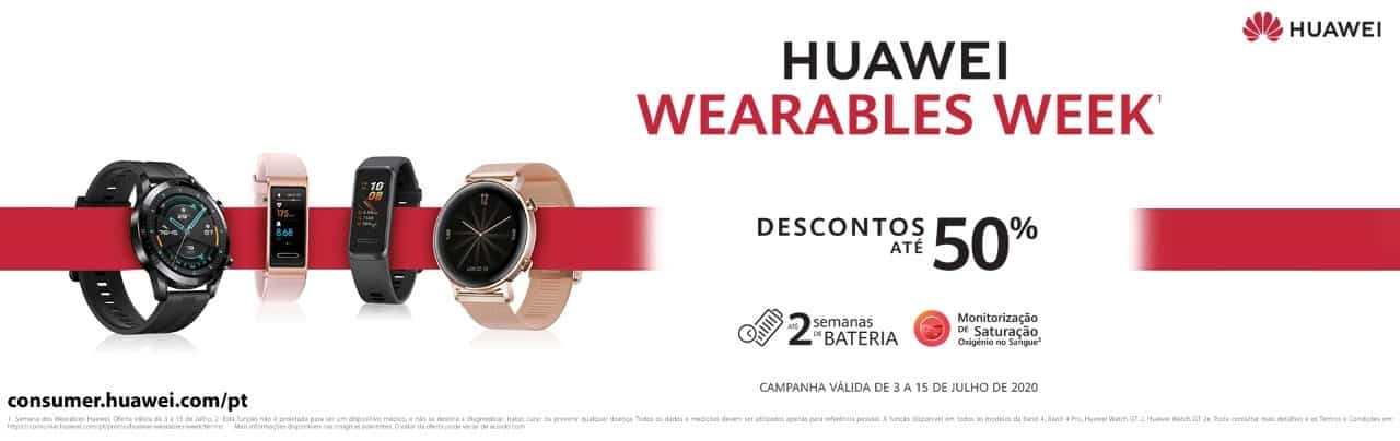 Está à procura de um novo wearable? Pois bem, a Huawei Portugal lançou hoje a sua mais recente campanha, a Wearables Week! Estamos a falar de uma semana 100% dedicada aos wearables da marca, que deverá estar em vigor de 3 a 15 de julho de 2020, trazendo para cima da mesa descontos até 50% em todos os Wearables Huawei.