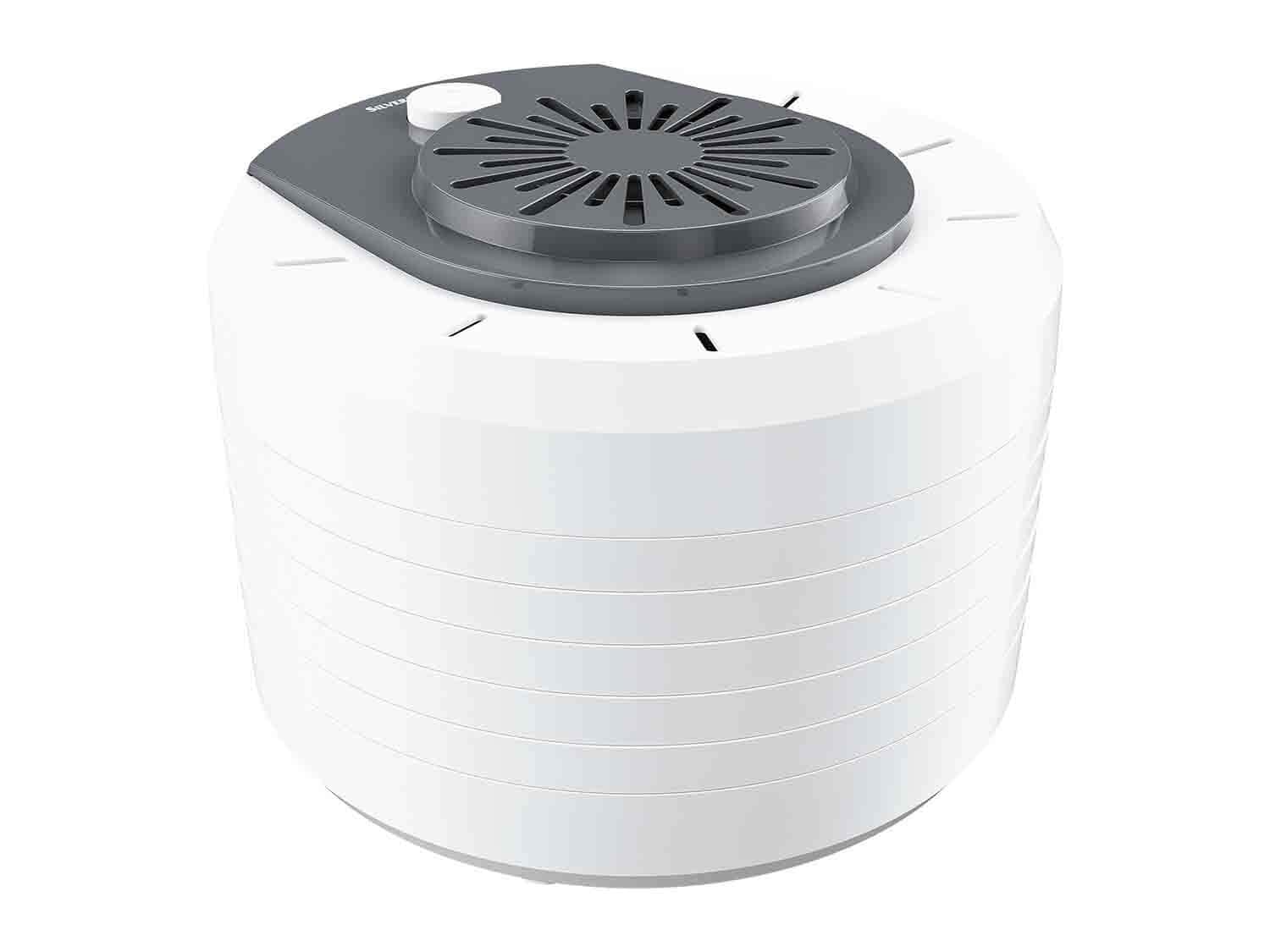 Com uma potência de 250 W, este desidratador é eficiente sem gastar demasiada energia. E graças ao seu tamanho compacto (28,6 cm de diâmetro por 25,1 cm de altura total), encaixa perfeitamente em qualquer cozinha sem ocupar muito espaço.
