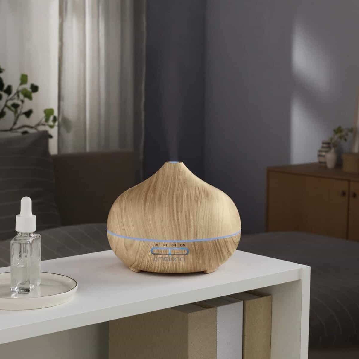 A primeira coisa que salta à vista é o seu acabamento com padrão de madeira, que consequentemente permite que se enquadre bem em qualquer sala ou quarto. No entanto, não é apenas um objeto bonito. Além disso, este difusor conta com uma capacidade de 300 ml, o que garante várias horas de funcionamento contínuo sem teres de te preocupar em reabastecer a água.