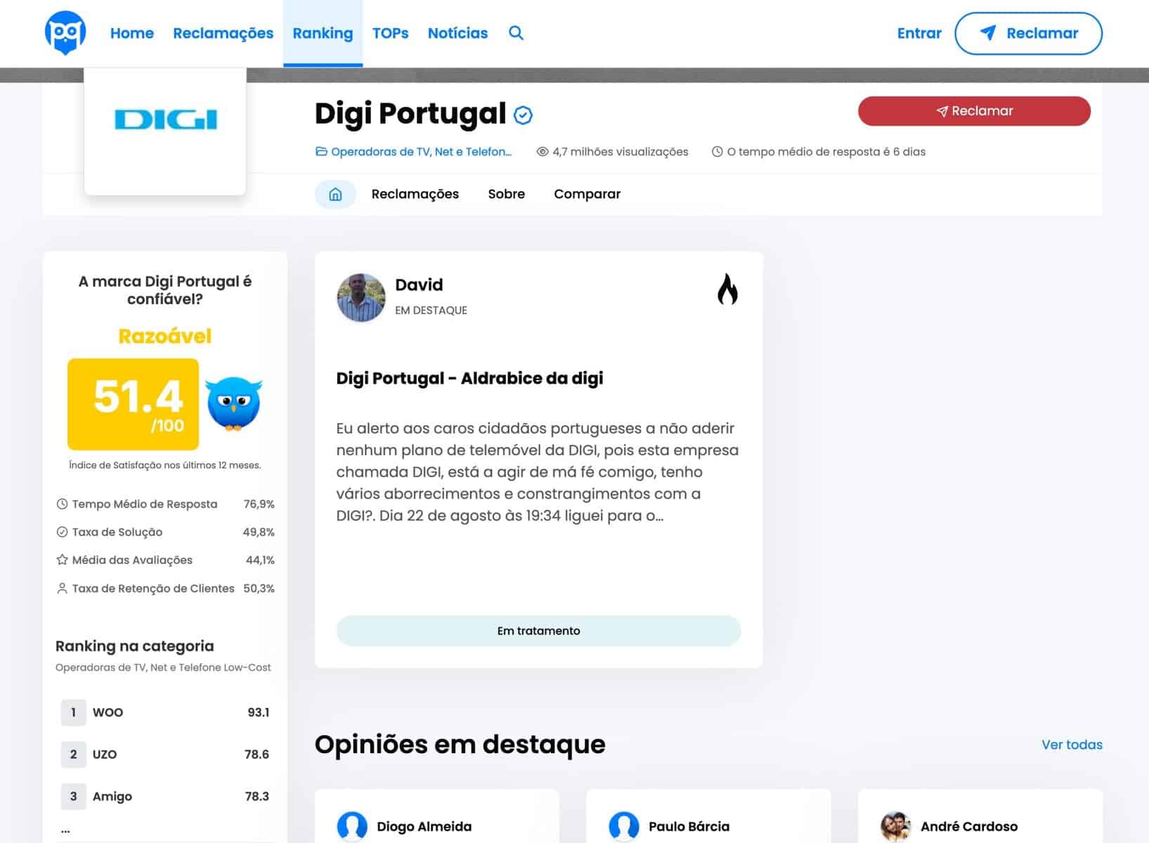 Porque é que a DIGI aparece com tantas reclamações?