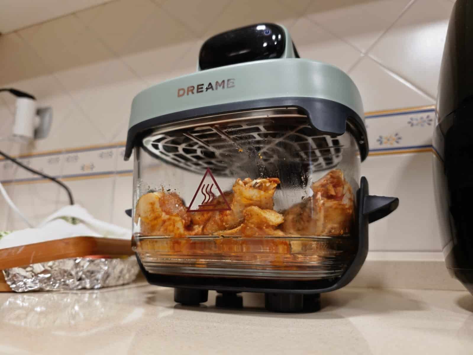 Pois bem, por sua vez, a Dreame Tasti usa vidro transparente. Ou seja, além de mais apelativo ao olhar, podes observar a comida sem abrir a gaveta. Isto retira a parte da “adivinhação” da equação, e também evita que andes sempre a interromper o processo para ver quando é que a coisa está ou não a ficar dourada.
