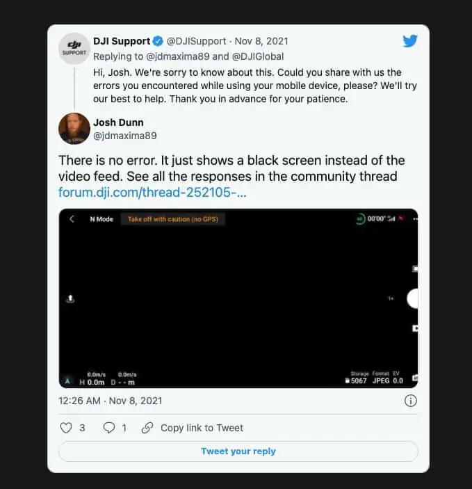 Seja como for o aumento de relatos acerca deste problema levou os moderadores dos fóruns da DJI a confirmarem que se trata de um problema conhecido. De facto, há um mês que foi referido que a DJI estava a trabalhar na resolução do problema. Referiram também que se esta situação estivesse a incomodar realmente mais valia trocarem de smartphone.