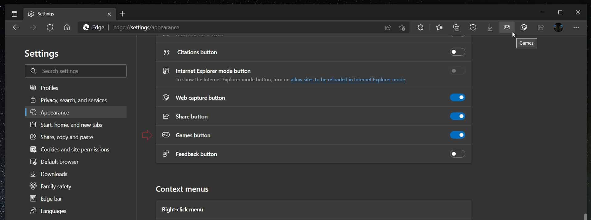 A forma de ativarmos esta novidade está na secção Aspeto das definições no Edge Canary. No entanto, não está disponível para todas as pessoas.