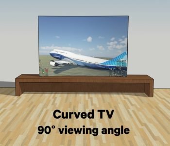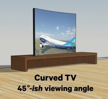 No entanto, se vive numa casa com 3, 4, 5 ou mais pessoas, a tecnologia começa a falhar de forma catastrófica. Afinal de contas, a não ser que goste de estar ao colo ou de ter alguém ao seu colo, é impossível meter um grande número de pessoas à frente de uma única TV. Ou seja, algumas pessoas vão ter de ver de lado, e aqui, a curvatura começa a ser uma desvantagem em vez de uma vantagem esmagadora na experiência de visualização. Ora veja os exemplos em baixo:
