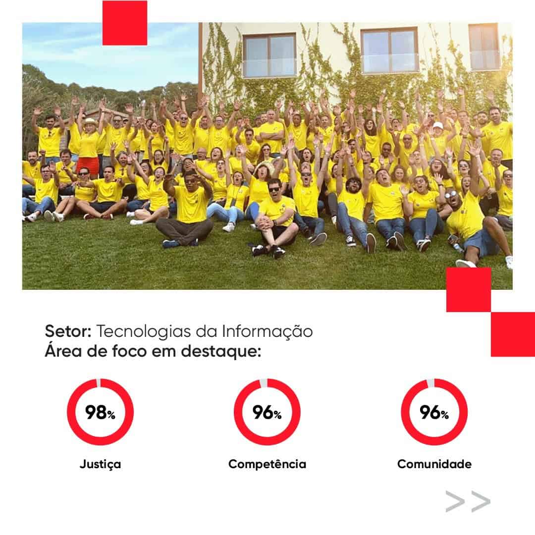 Portanto, para garantir que os resultados são fidedignos, a Great Place to Work envolveu diretamente a grande maioria dos colaboradores de cada empresa. A ideia foi perceber, por inteiro, como estão os diferentes aspetos daquilo que é a experiência de trabalho! Por exemplo, a liderança, as oportunidades de desenvolvimento profissional, o ambiente trabalho, cultura organizacional, bem como o bem-estar geral e ambiente de trabalho propriamente dito.