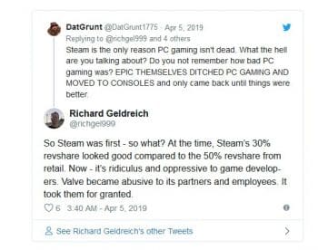 Em suma, o antigo programador da Valve, usou a sua conta na rede social Twitter, para dizer que no seu ponto de vista, a fatia de 30% que a Steam cobra, já não faz sentido, e que estava ativamente a ‘matar’ o PC Gaming.