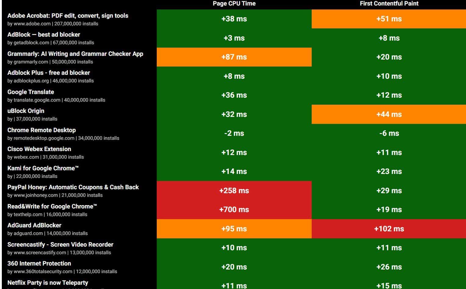 Esta não é uma ideia nova. Os utilizadores de computadores têm tentado identificar extensões que consomem muitos recursos. Mas é difícil determinar a quantidade exacta de tempo, em milissegundos, que uma determinada extensão irá acrescentar ao processo de carregamento de um site.