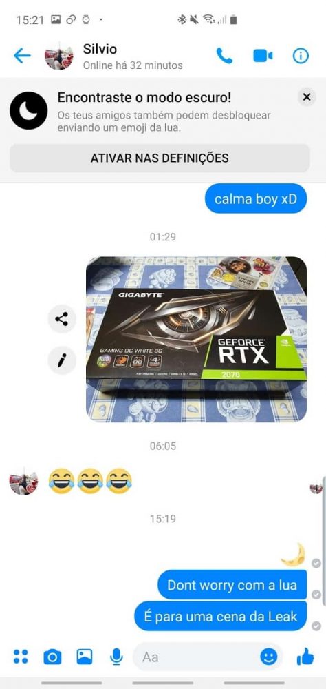 Portanto, basta abrir uma qualquer conversa no Facebook Messenger, e enviar o ‘Emoji’ da lua.