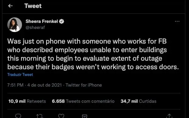 Mas há mais uma questão a atrasar a resolução. É que de acordo com uma jornalista americana os funcionários do Facebook não estão a conseguir aceder às instalações porque os cartões de acesso não estão a funcionar.