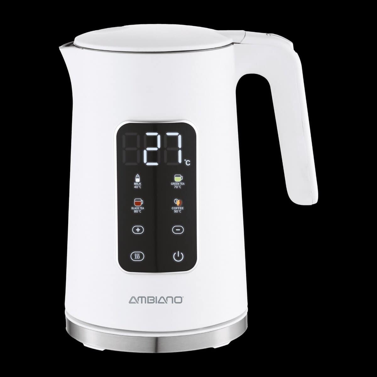 O novo fervedor do ALDI distingue-se pela potência de 2200 W, permitindo aquecer água rapidamente, mesmo em grandes quantidades. Com uma capacidade generosa de 1,7 litros, consegues preparar chávenas suficientes para toda a família ou para quando recebes amigos em casa. O design moderno inclui um ecrã tátil intuitivo, que te permite escolher facilmente entre os quatro programas automáticos disponíveis: leite, chá verde, chá preto e café. Cada opção funciona para atingir a temperatura ideal para cada tipo de bebida, realçando os sabores e garantindo a melhor experiência.