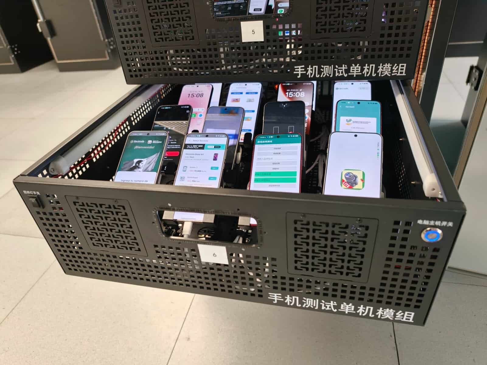 Já o Intelligent Terminal Testing Lab, que são os armários que mencionámos em cima, funciona como um exército de telemóveis ligados 24 horas por dia. Milhares de dispositivos a correr código, a instalar apps, a simular anos de uso real. Tudo isto sem mãos humanas a interferir, graças a sistemas automatizados que podem testar dezenas de milhares de equipamentos em simultâneo.