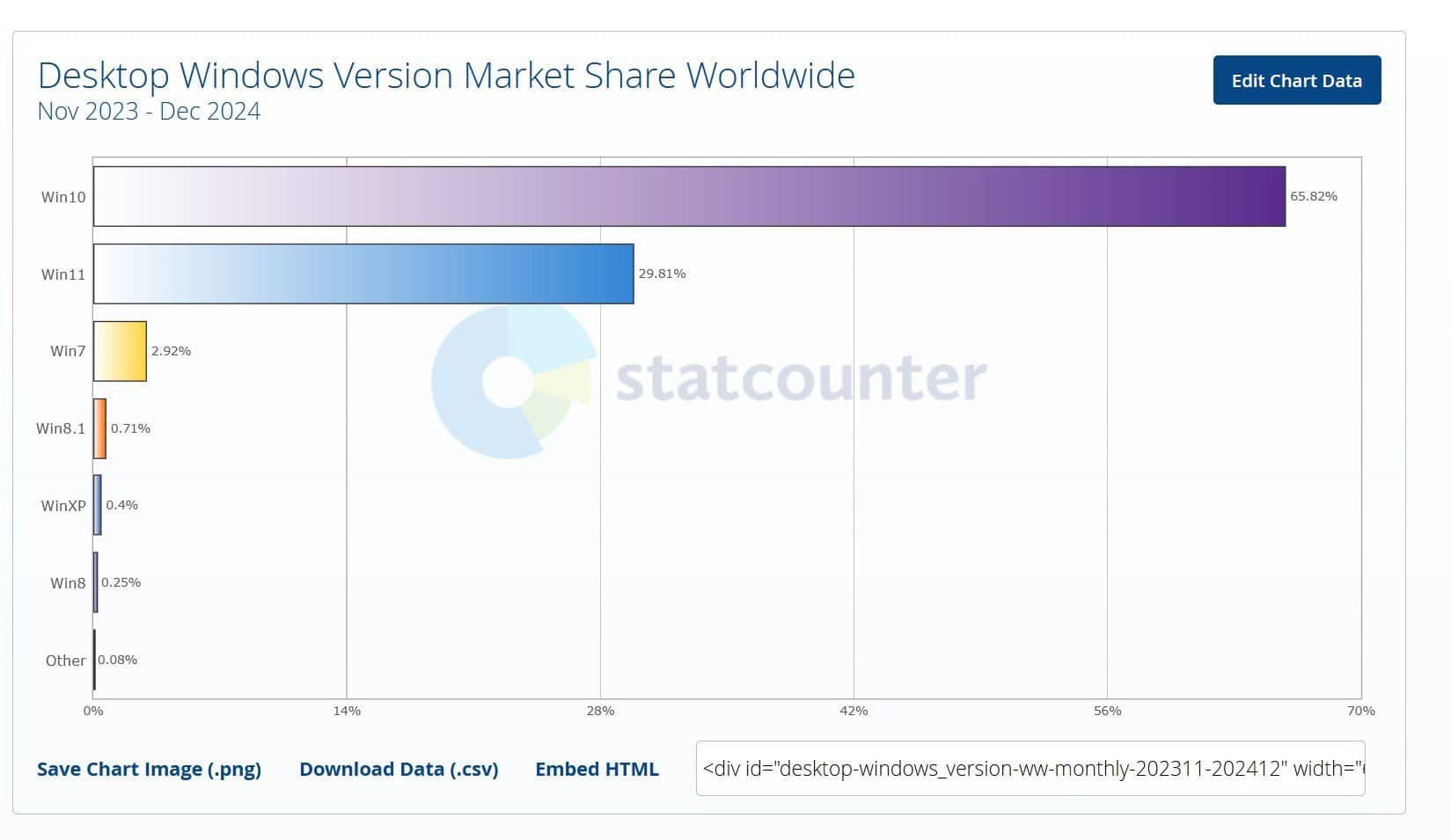 Dezembro de 2024 foi outro bom mês para o Windows 10, com um aumento de 0,87 em relação ao mês anterior, atingindo 62,7% dos utilizadores.