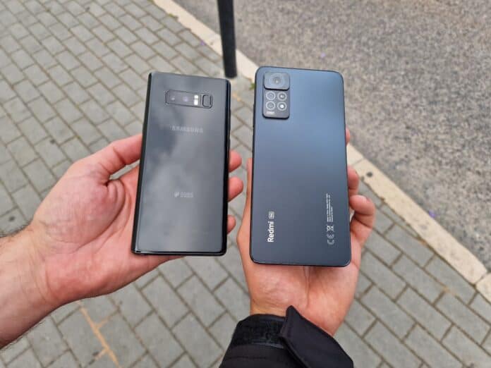 Nota do Redator: Lado esquerdo é sempre o Galaxy Note 8, o Lado direito é sempre o Redmi Note 11 Pro)