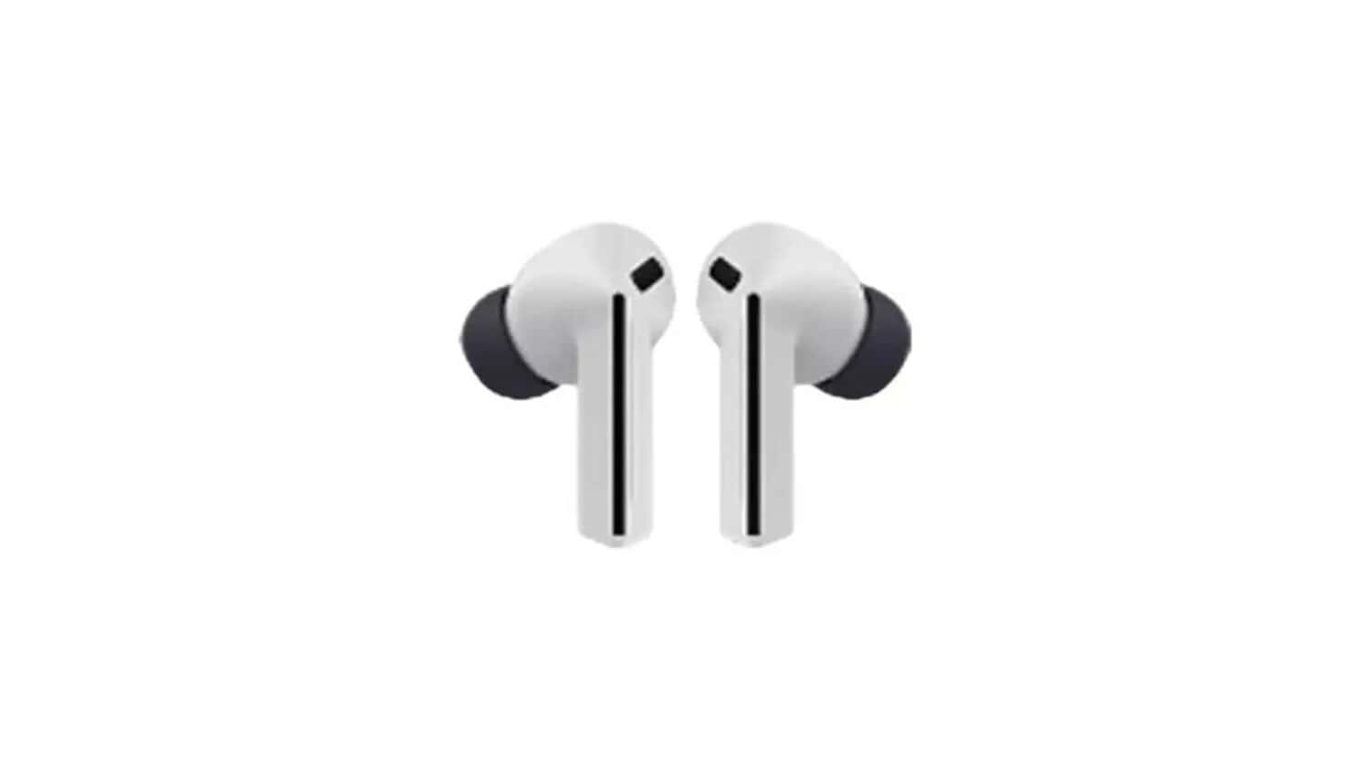 Na imagem, os Buds 3 FE surgem com um design com haste e pontas de silicone, tal como os Galaxy Buds 3 Pro. Isto marca uma clara diferença em relação aos Galaxy Buds 3 “base”, que seguem um estilo mais aberto e semelhante aos AirPods da Apple sem pontas de borracha.