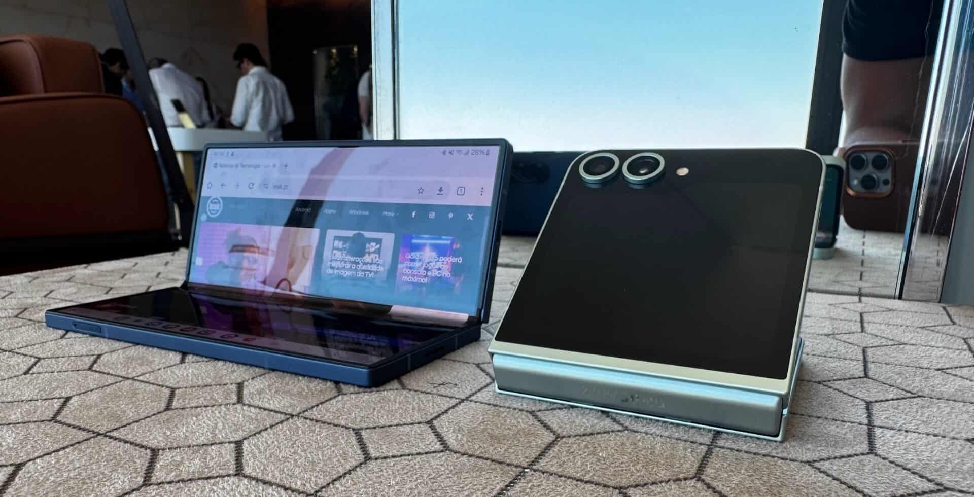 A Samsung também tratou de limar o perfil: o novo Flip será 0,8 mm mais fino fechado e 0,4 mm mais fino aberto, o que o torna mais elegante na mão e no bolso.