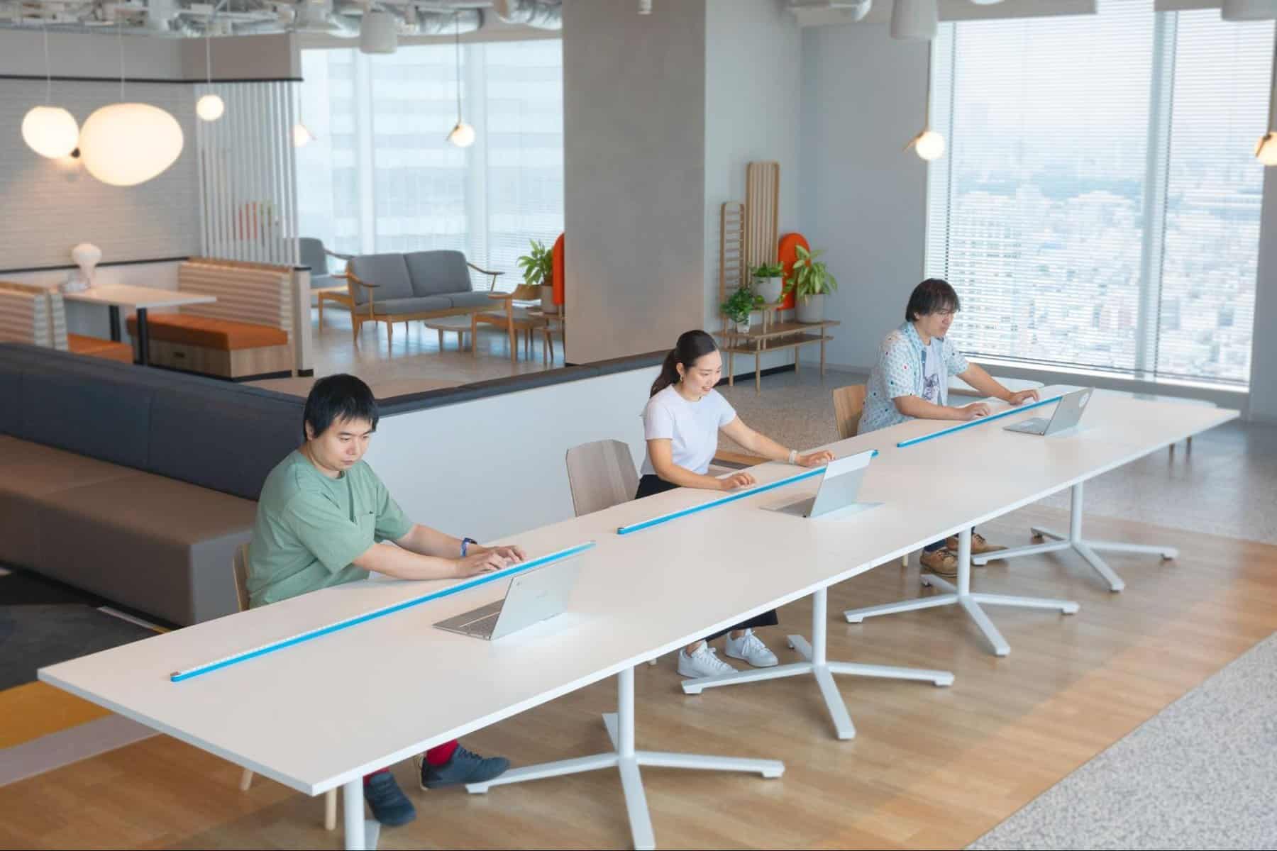 O seu design deixa espaço para outras coisa em cima da mesa.