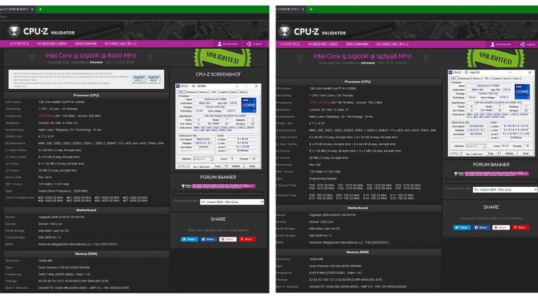 Gigabyte chegou aos 8GHz com um 12900K. Mas o CPU-Z diz que foi batota