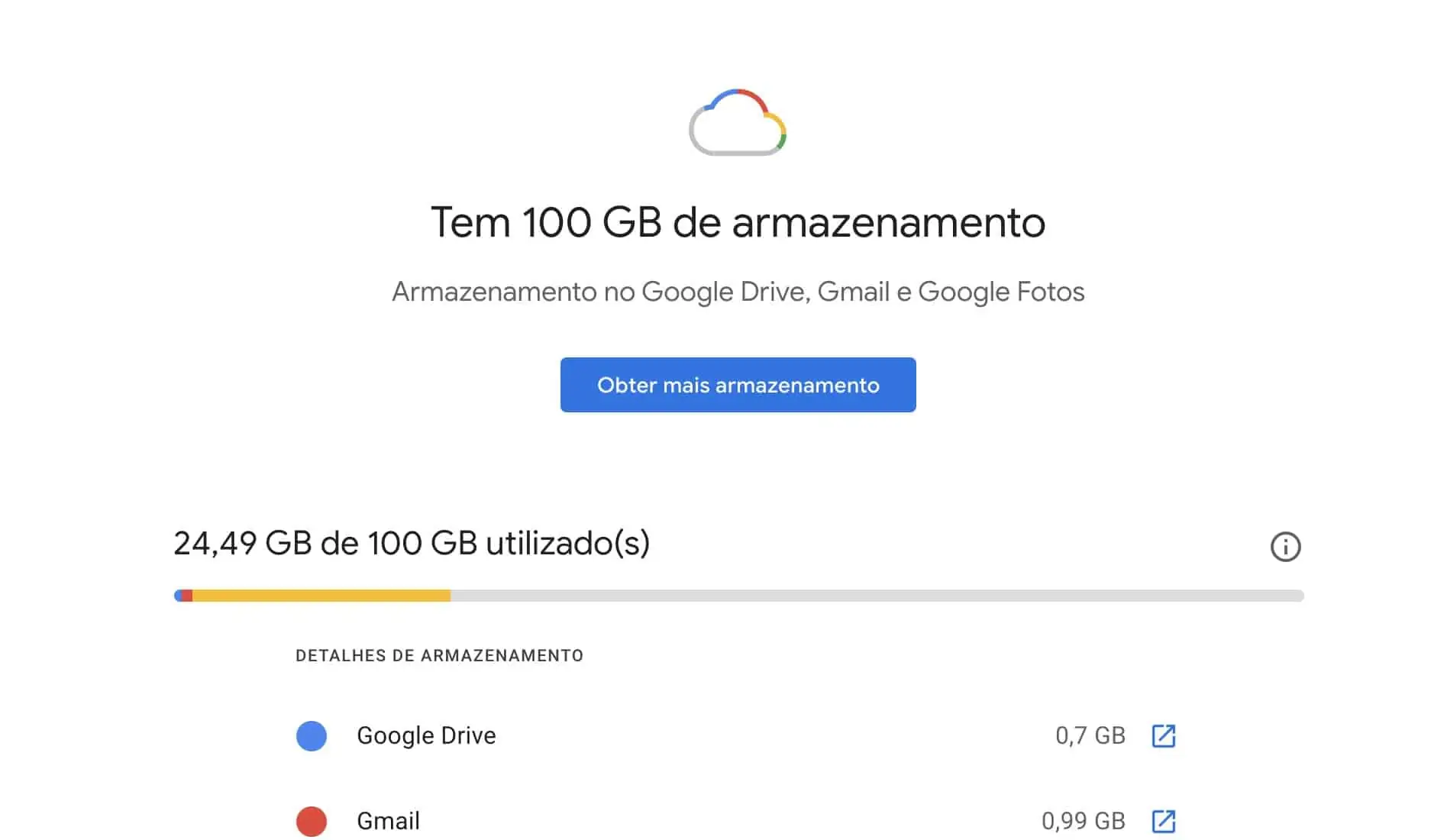 É bastante simples descobrir quanto espaço tem disponível no Gmail. Para esse efeito basta aceder a este link e fica logo a saber. No meu caso tenho 100GB porque tenho uma subscrição Google One. No entanto, para quem tem uma conta grátis o espaço máximo são 15GB.