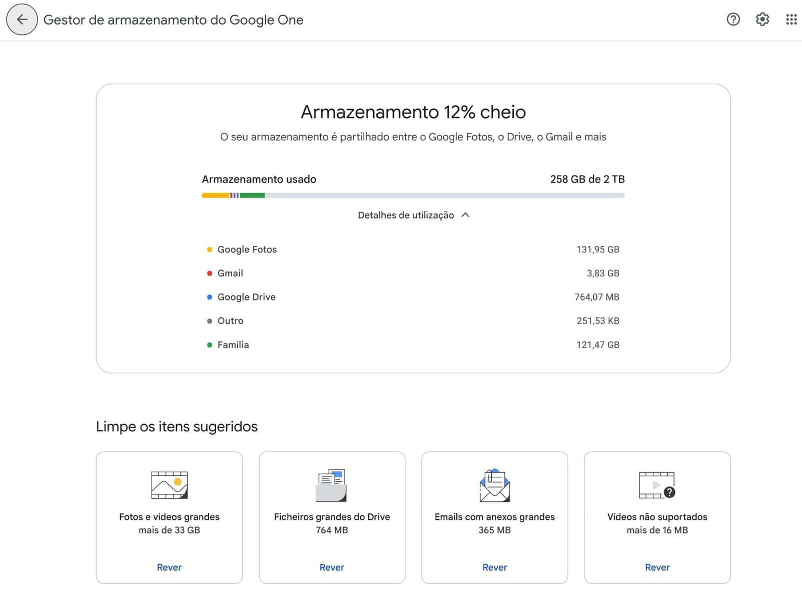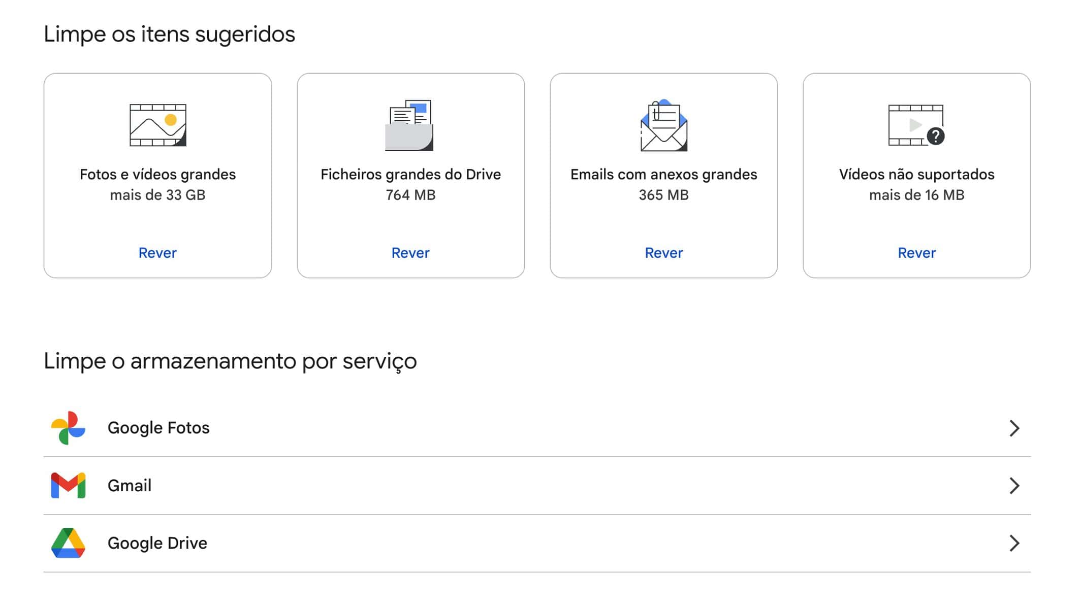 Por outro lado, a Google tem uma página dedicada à gestão de armazenamento no Google One que organiza tudo por tamanho. Assim segue este passo a passo para libertar gigabytes em menos de um minuto: