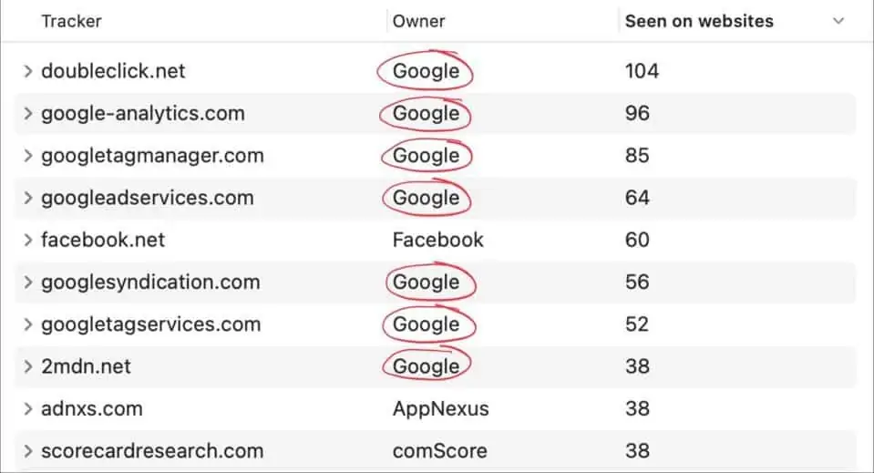 Entretanto este investigador foi buscar um estudo da conhecida empresa DuckDuck Go revelou. Lembro que é uma concorrente da Google que se destaca pela privacidade ao não recolher dados dos utilizadores. Assim, foi dito que os sistemas da Google que seguem os utilizadores estão implementados em 75% dos websites de topo a nível mundial.