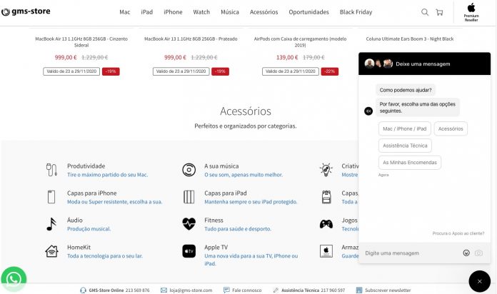 Agora quem quiser comprar, tirar dúvidas, pedir informações e estar atualizado sobre a campanha Black Friday e sugestões de Natal, pode fazê-lo online, em segurança e sempre acompanhado por especialistas Apple