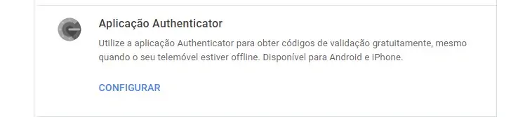 Em primeiro lugar na mesma página Google onde ativou a autenticação de dois fatores, mais abaixo tem uma opção que diz Aplicação Authenticator. Clique em Configurar.