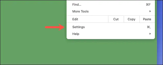 Em seguida, vamos escolher “Definições” no menu suspenso.