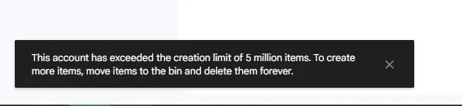 A propósito disto citaram um link do Issue Tracker criado na mesma altura, com as pessoas a comentarem e a acreditarem que se tratava apenas de um bug. Algo com correção no devido tempo. No entanto, houve alguns relatos de que o limite total de ficheiros é reportado como sendo de cinco milhões de ficheiros. Isto também levou a que lhes fosse apresentada a janela abaixo e também lhes fosse pedido para apagar dois milhões de ficheiros para continuarem a usar o Google Drive.