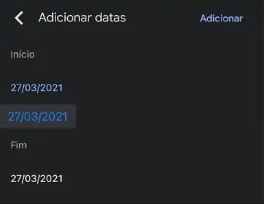 Entretanto quando carrega na opção surge um botão onde pode adicionar datas e ignorar. É só definir uma data de início e outra de fim. De facto nada mais simples.