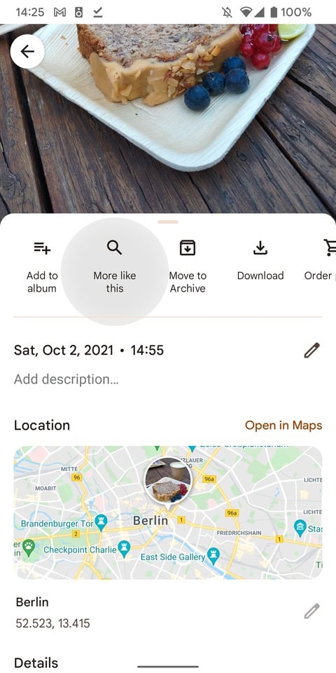 Esta função foi inicialmente revelada pelo canal russo Google News no Telegram. Entretanto a esta revelação seguiram-se vários testemunhos na forma de confirmação. O novo botão surge entre as opções de Adicionar ao Álbum e Mover para o Arquivo. Chama-se Mais como esta e analisa a foto em questão e procura por outras semelhantes na biblioteca do Google Fotos. Isto pode ser útil se estivermos à procura de uma foto específica, mas só conseguimos encontrar outra parecida.
