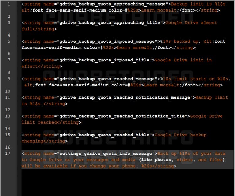 Algumas das linhas revelam como é que a app vai comunicar a notícia de que haverão alterações ao nível da Google. Dito isto, vamos ficar a saber quando é que estamos quase a chegar ao limite grátis. E atenção que segundo consta o limite não é muito grande. Falo de 2GB. Com a quantidade de coisas que recebemos a toda a hora e sobretudo com o passar dos anos esta capacidade é quase nada.