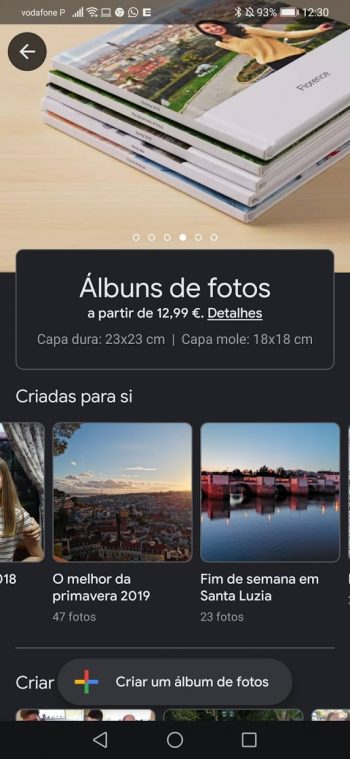 Entretanto e já que falamos nos serviços de fotos, a criação de álbuns impressos por parte da Google funciona muito bem. Já fiz alguns, nomeadamente o mais caro com capa dura e a qualidade final é realmente boa. Temos direito a várias páginas com as fotos que escolhemos, o sistema trata da organização das mesmas de forma cronológica e depois é so pagarmos. O preço ronda os 29 Euros já com o envio. A questão é que leva um pouco a chegar. Cerca de 10 dias. Ainda assim, não deixa de ser uma excelente opção.