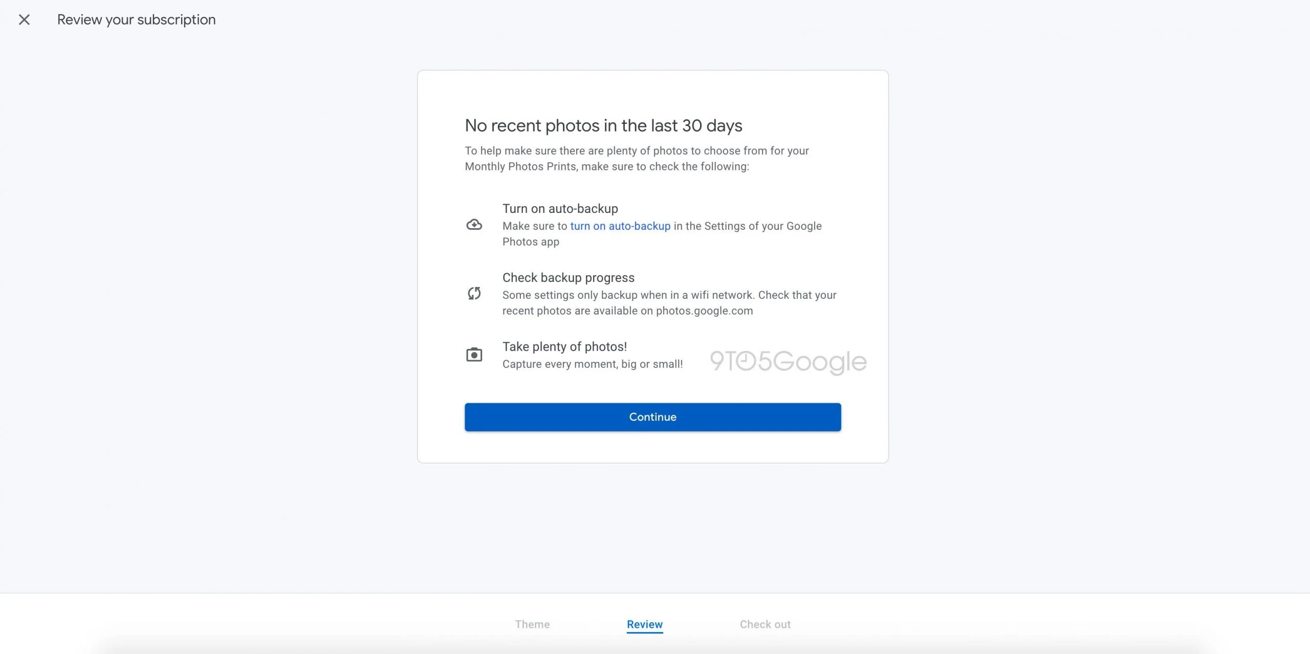 Com as novas funcionalidades do Google Fotos, temo acesso a um novo tipo de assinatura que oferece uma taxa mensal para imprimir as 10 melhores fotos tiradas nos últimos 30 dias. O mais interessante é que a maioria das coisas são automáticas. As fotos são selecionadas automaticamente pelos algoritmos da Google, de acordo com as diretrizes do “utilizador”. De facto, podemos definir um dos três temas para selecionar as fotos. As impressões chegarão no formato 10 x 15cm.