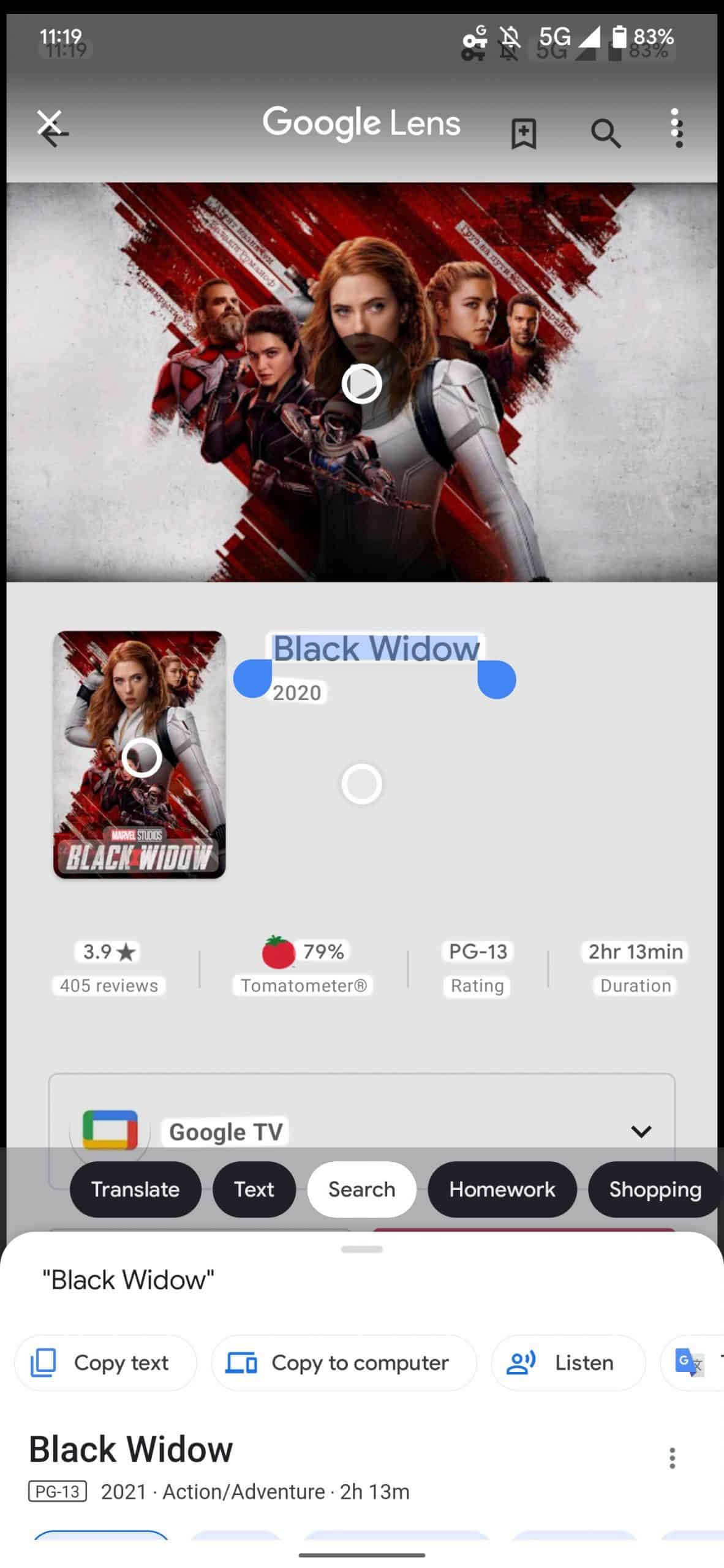 Para além disso, o Google Lens aparece na pagina de informações que surge quando se faz swipe up numa imagem. Assim temos uma nova secção que permite procurar na foto por debaixo da data e hora.
