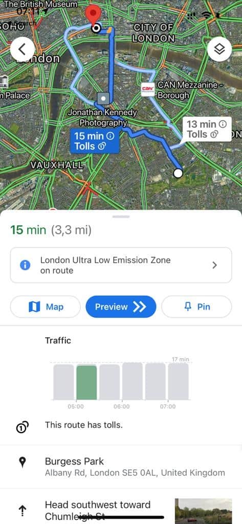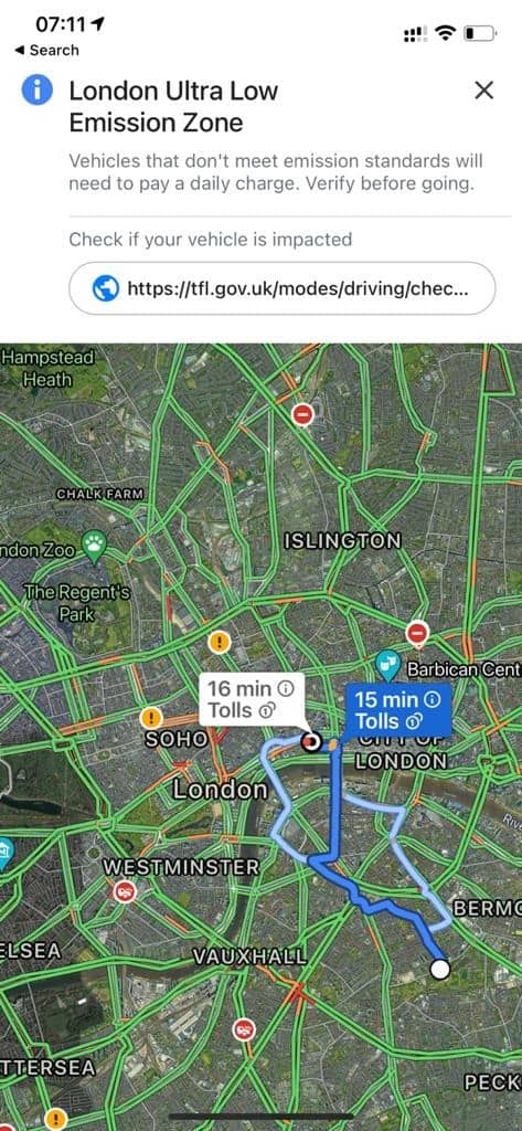 Tudo funciona de uma forma muito simples. Assim o Google Maps pode informar-nos com antecedência quanto a nossa rota passa por uma zona com baixas emissões. Nesse caso podemos olhar para uma rota diferente ou escolhermos um método alternativo de transporte.