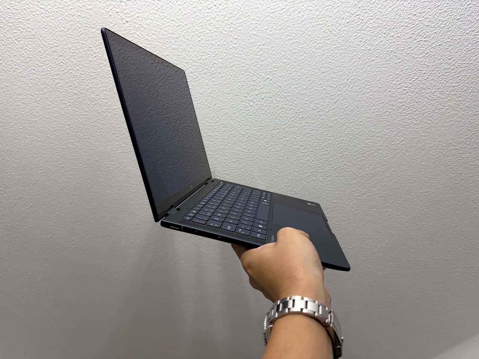 O ponto menos positivo é o peso: cerca de 1.5kg. Não é um tijolo, mas também não é aquele 2-em-1 super leve que quase desaparece na mochila. É mais pesado que o modelo não-flip.