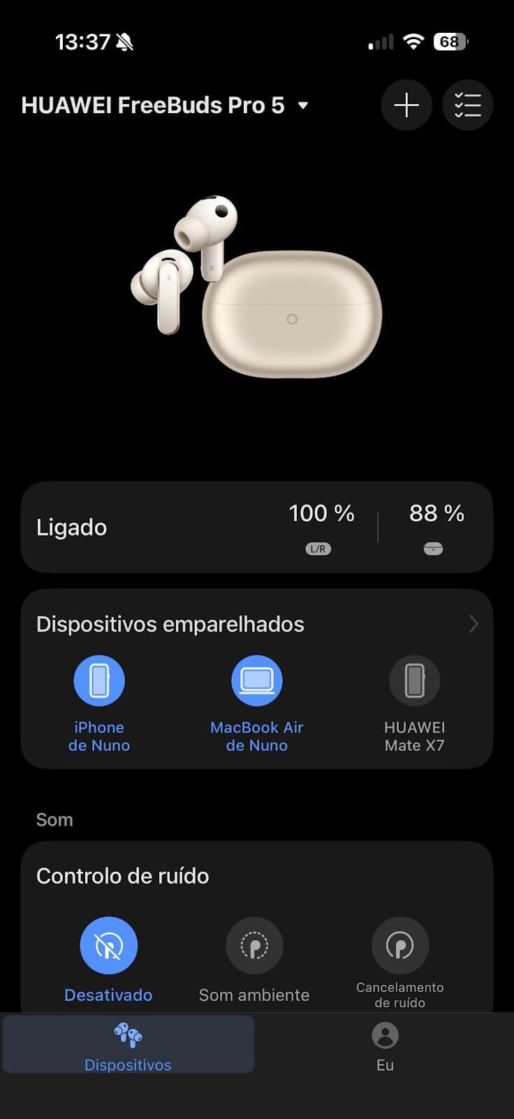 Os FreeBuds Pro 5 são controlados através da aplicação Huawei Audio, disponível para Android, iOS e dispositivos Huawei.