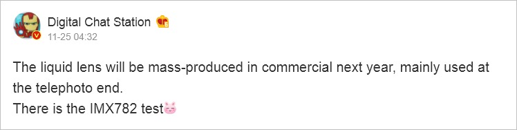 Se as informações avançadas por um leakster chinês se confirmarem estas lentes líquidas serão associadas ao sensor Sony IMX782 que ainda não foi anunciado. Isto será, sem dúvida, a garantia de uma excelente qualidade fotográfica.