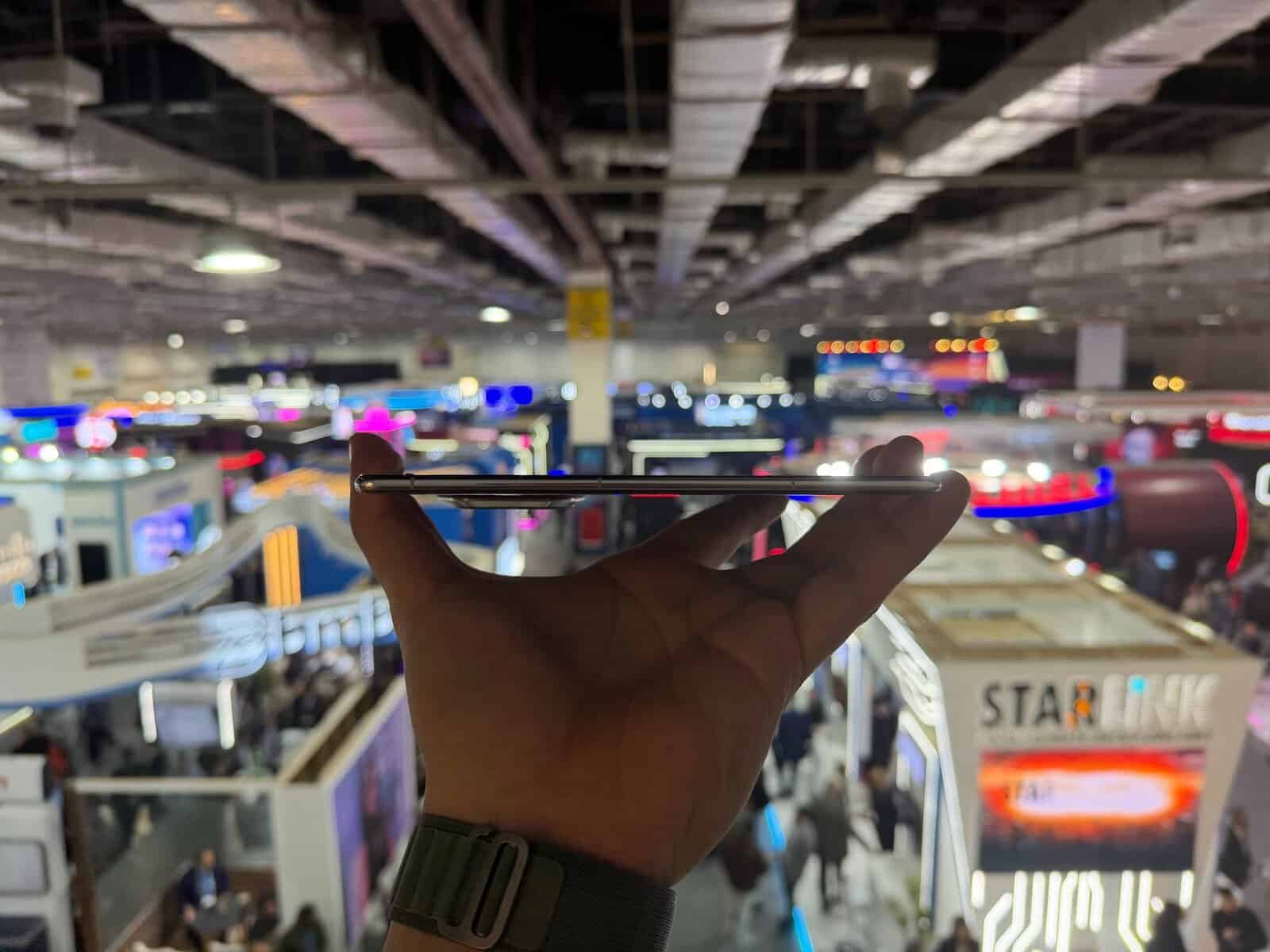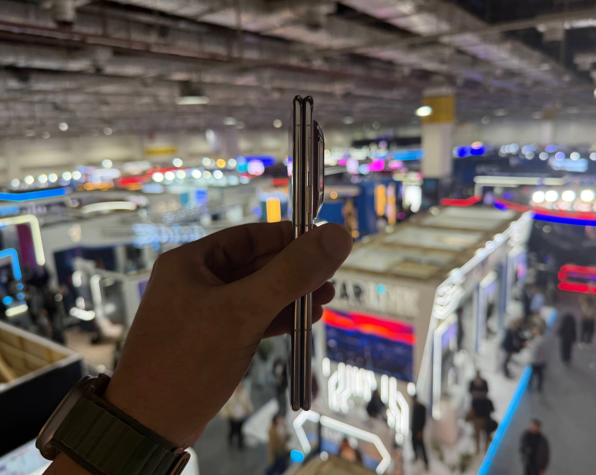 Afinal de contas, a espessura fica abaixo dos 10 mm quando fechado e, aberto, estamos a falar de cerca de 4.5 mm. Pouco mais que a grossura da porta USB-C. Isto significa que no bolso não incomoda, e na mão não obriga a ajustes constantes. Nunca senti aquele peso estranho concentrado na zona da dobradiça ou do módulo de câmara.