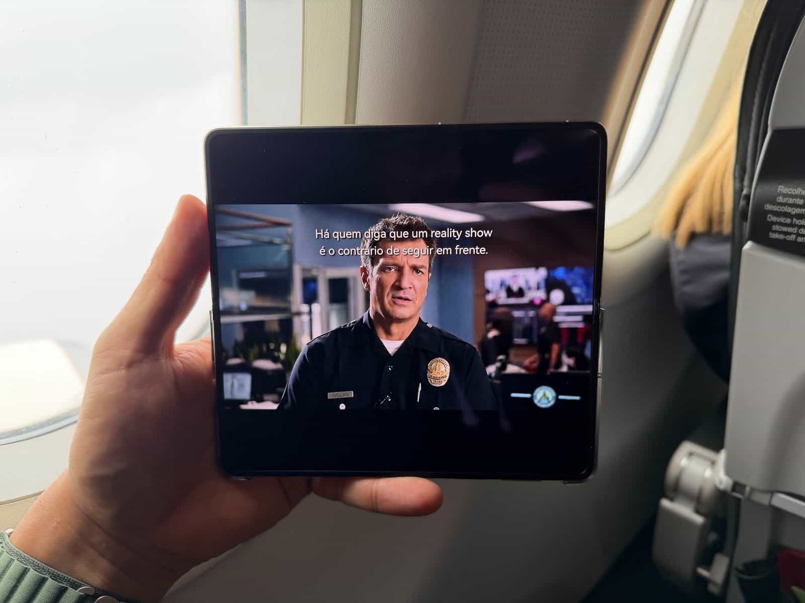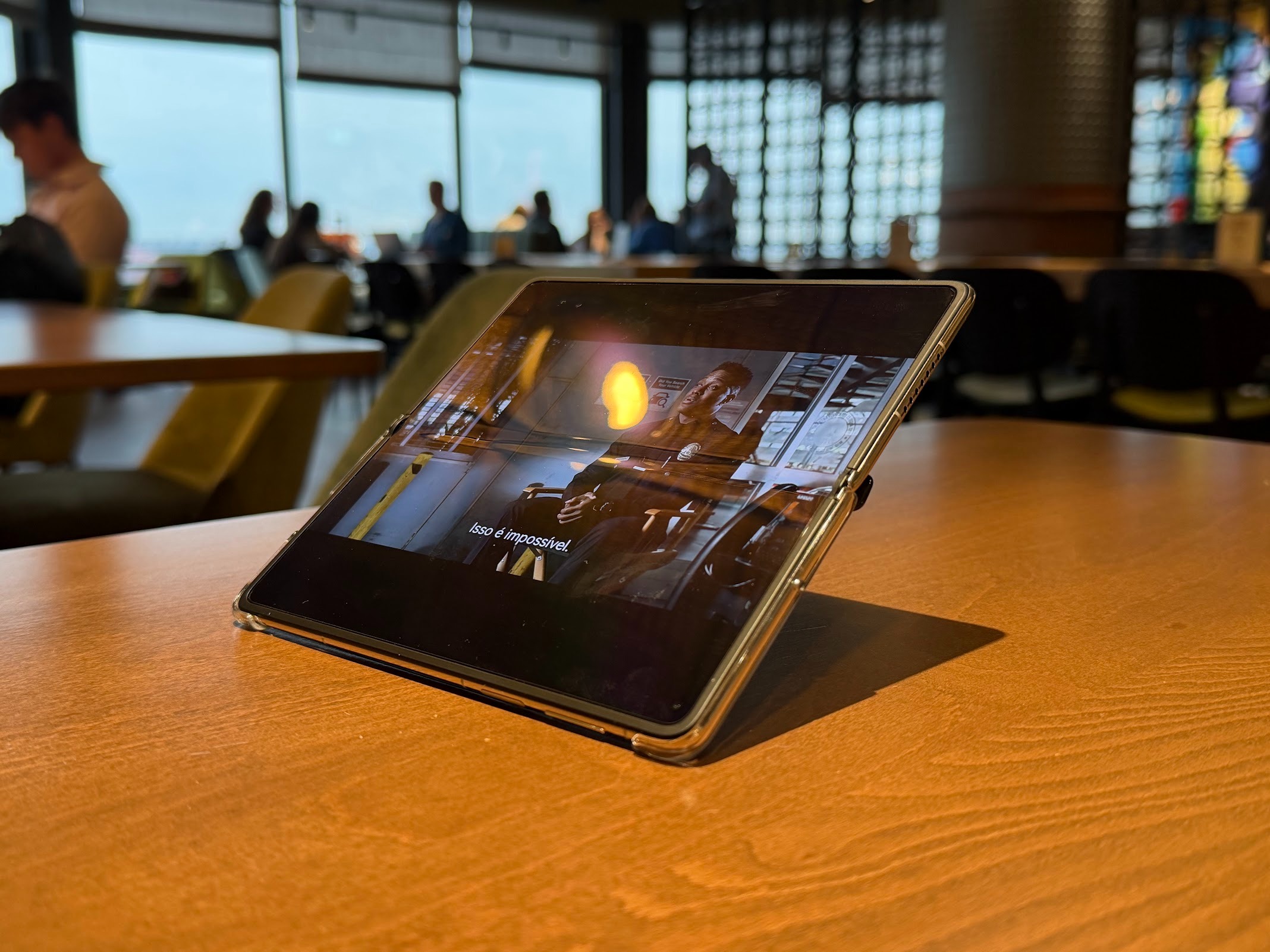 Os 5.300 mAh chegam perfeitamente para um dia completo, mesmo alternando entre ecrã exterior e interior. Além disso, quando precisas de carregar, os 66 W com fio fazem o trabalho de forma convincente. Usei este Fold para ver séries e filmes, e mesmo após uma viagem de 4 horas, cheguei ao destino com 70%. Muito bom.