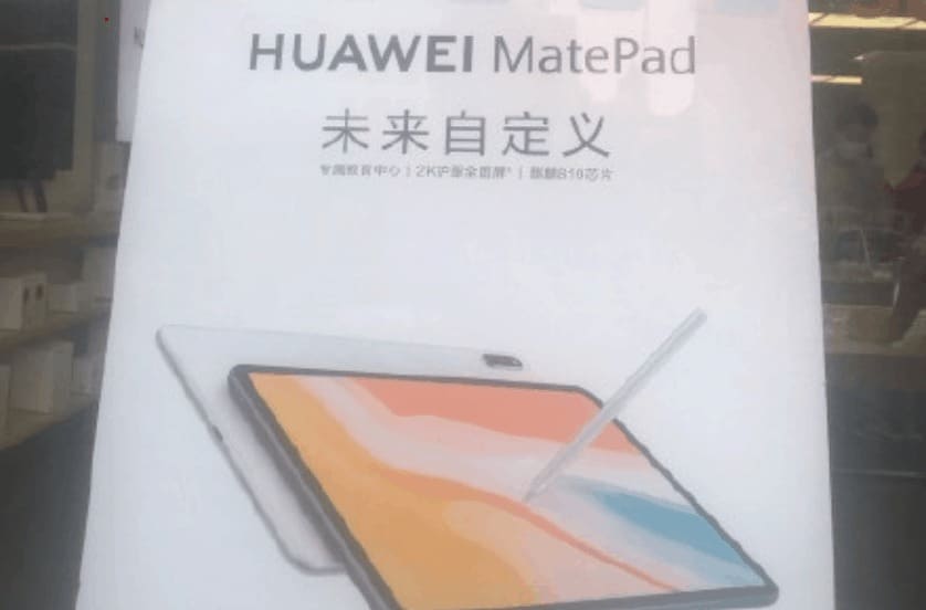 A imagem do cartaz simplesmente designa este tablet de “Huawei MatePad” e terá duas variantes de cores – branco e cinza. Entretanto os principais pontos destacados do Huawei MatePad são uma funcionalidade educacional, um ecrã 2K com proteção para os olhos 2K e um chipset Kirin 810. Além disso, as molduras são significativamente mais finas do que em outros tablets da Huawei. No entanto, parecem ser mais grossos do que na suposta imagem do Huawei MediaPad M7. Entretanto, este tablet não tem um furo no ecrã, mas pode ser fornecido com suporte para a caneta.